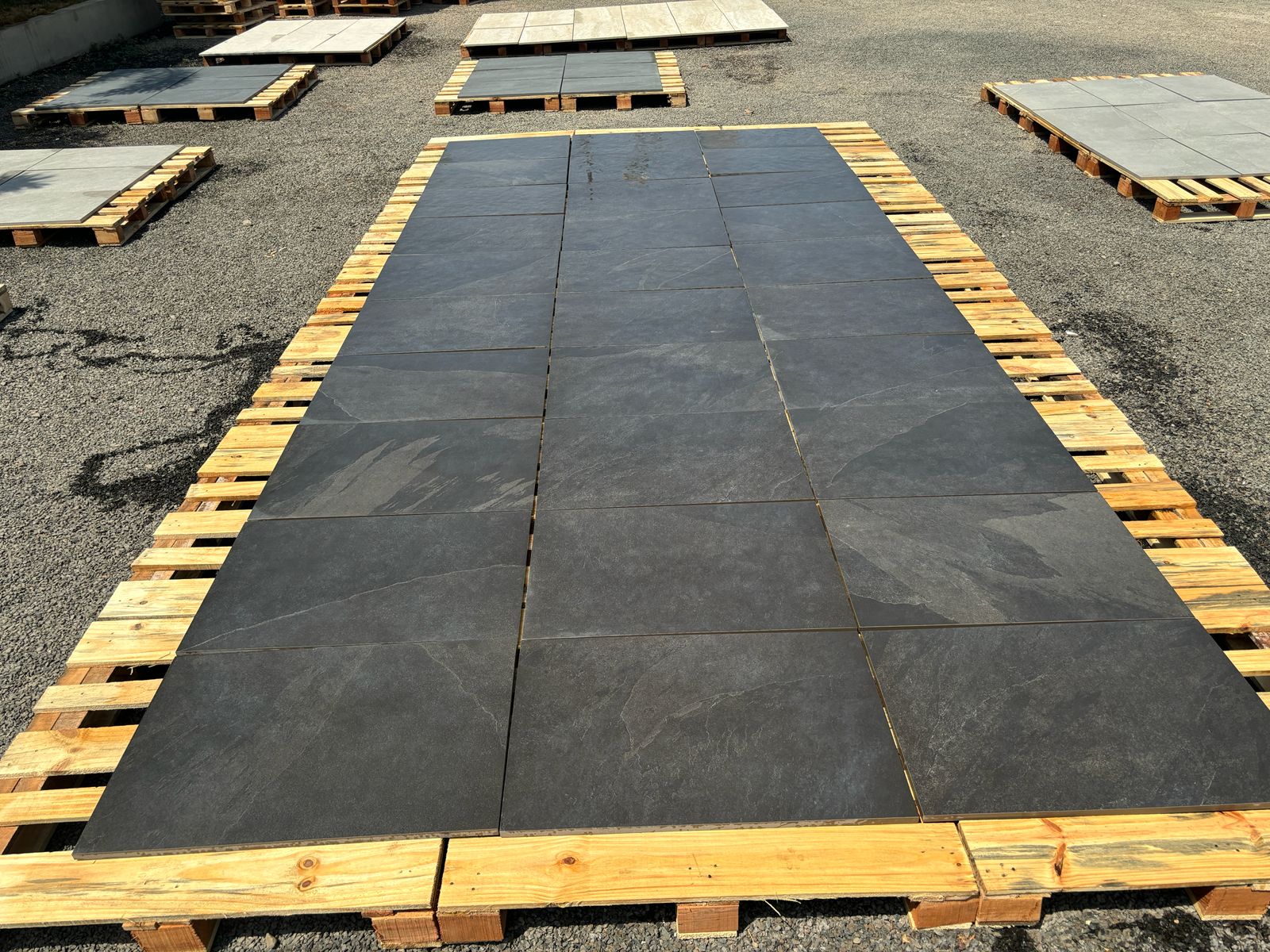 Also known as Black Slate. A bold, deep black with rich slate-like movement and fine silver veining — super solid, super confident, and brilliant for grounding a space. Anchors terraces, courtyards and pool surrounds with serious presence.