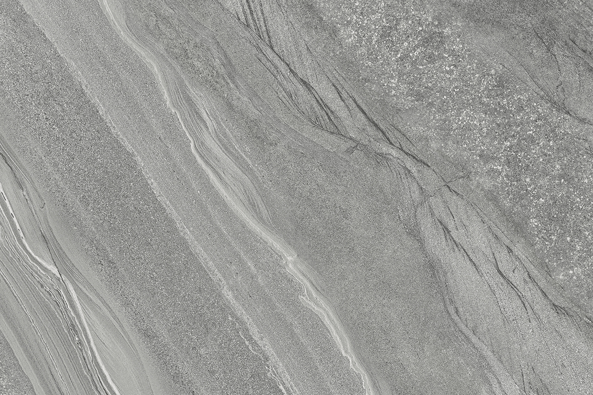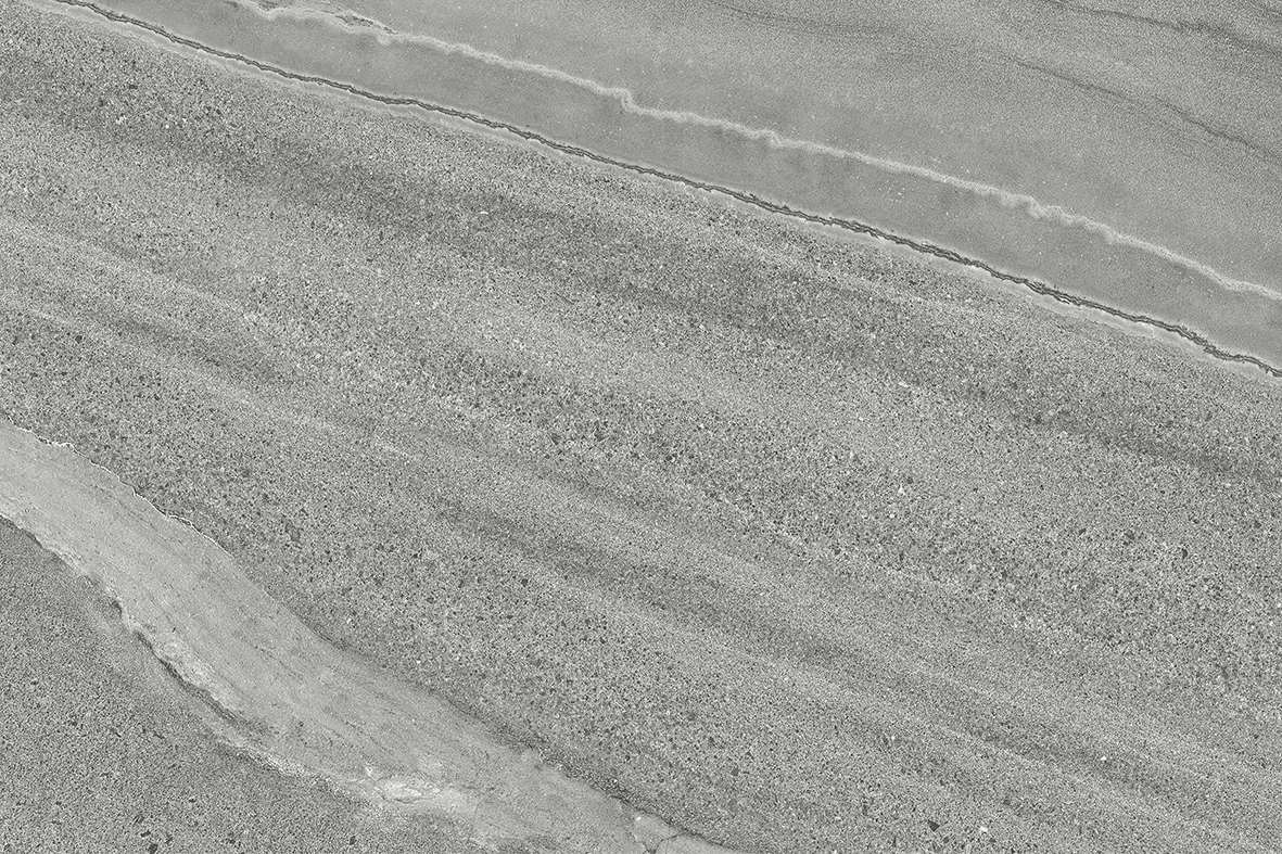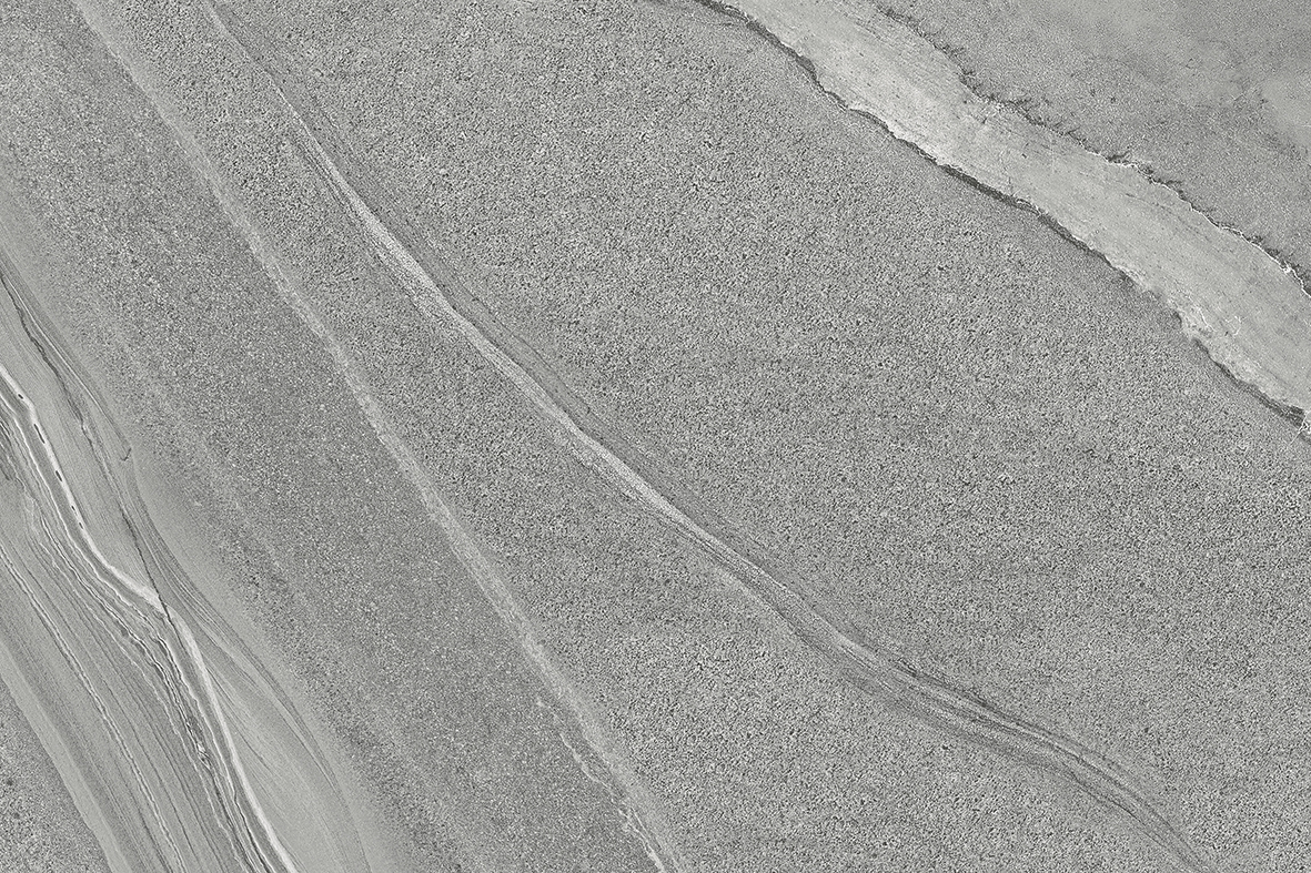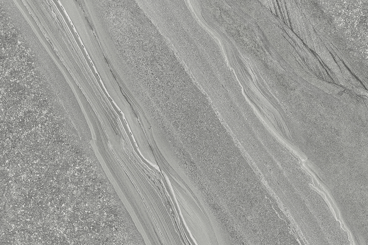A cool mid-grey porcelain with sweeping linear movement — soft cloud-like veining, fine directional grain and quiet contrast. Reads like weathered limestone with a contemporary edge, suited to modern terraces, courtyards and architectural landscapes.