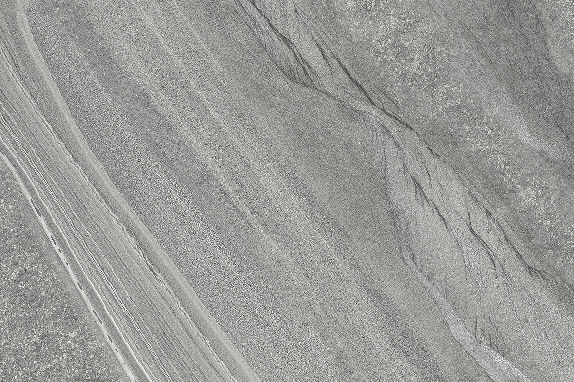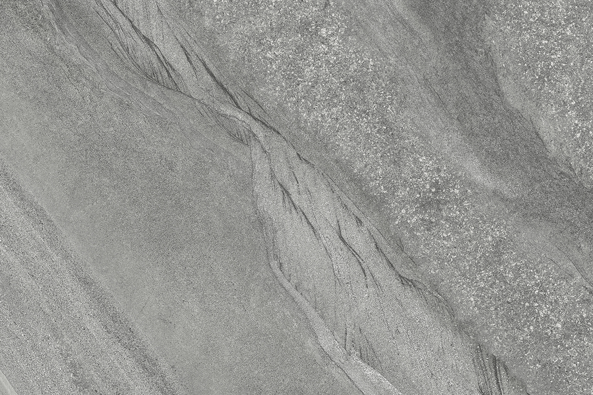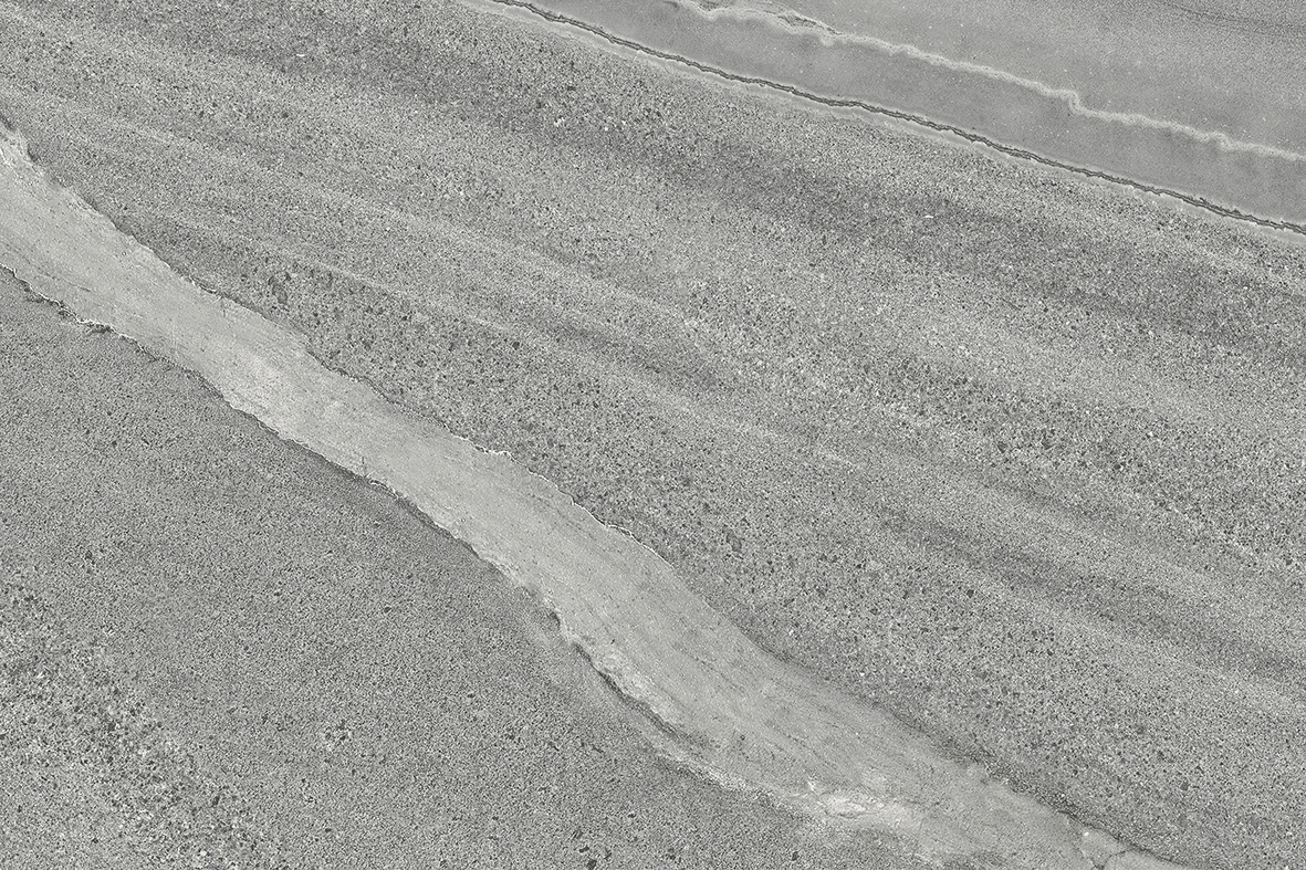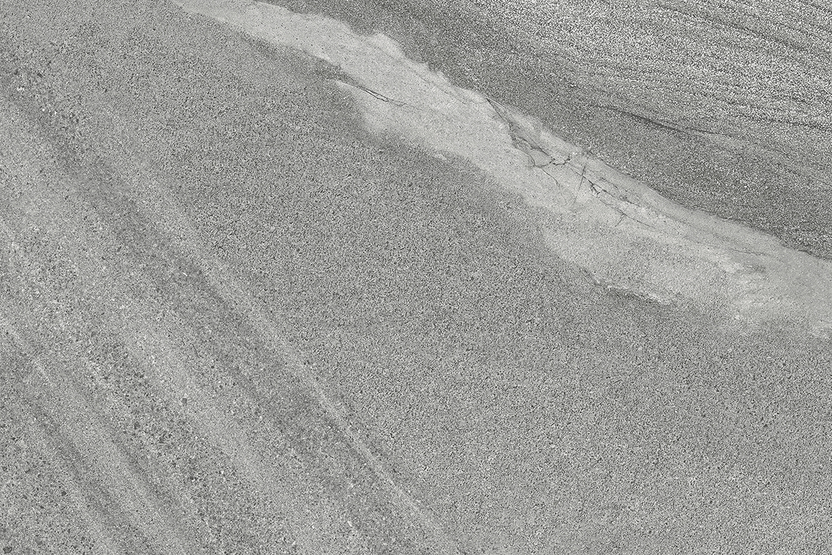 A cool mid-grey porcelain with sweeping linear movement — soft cloud-like veining, fine directional grain and quiet contrast. Reads like weathered limestone with a contemporary edge, suited to modern terraces, courtyards and architectural landscapes.