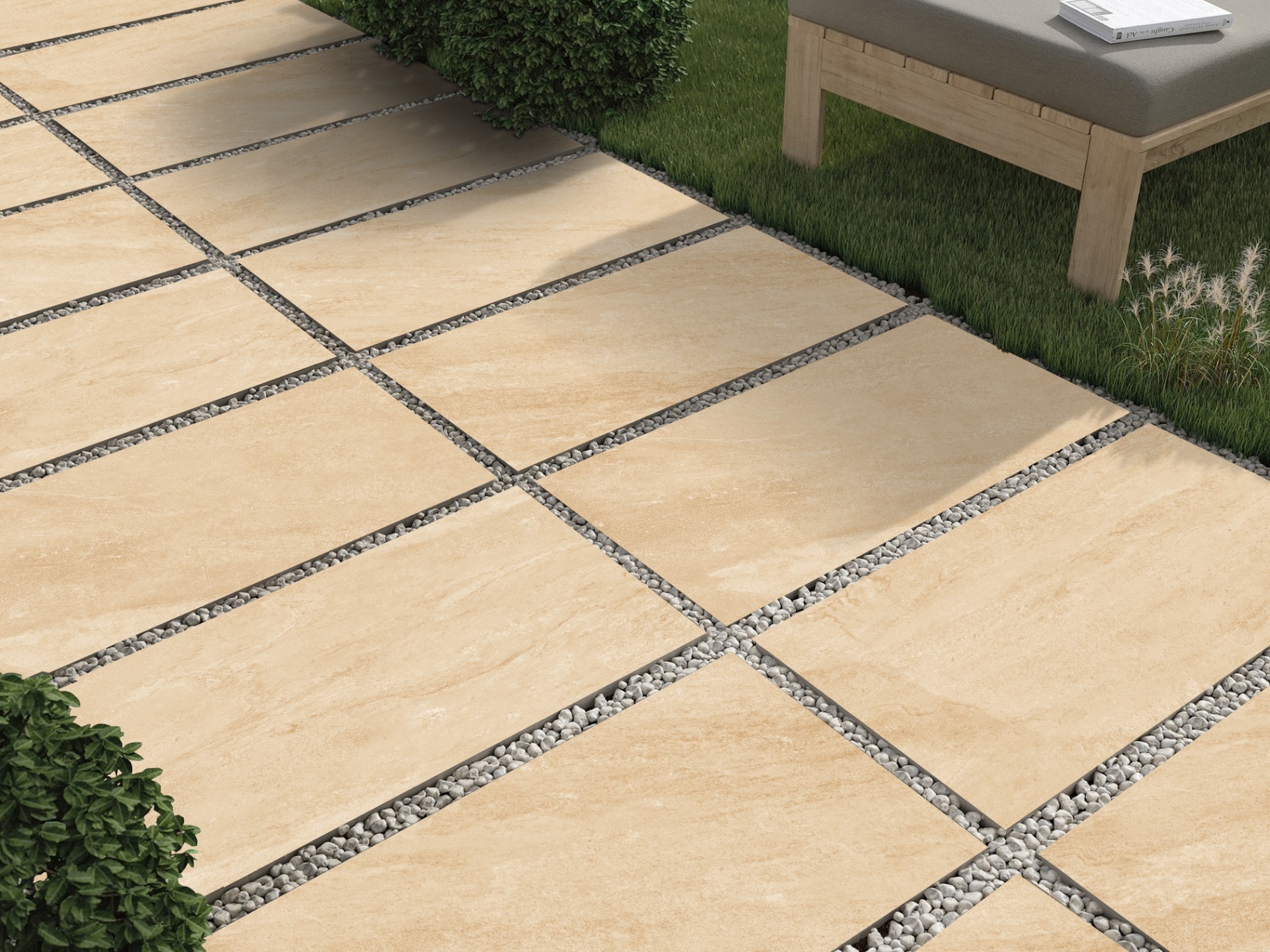 Soft warm beige porcelain — understated and easy to specify across schemes.